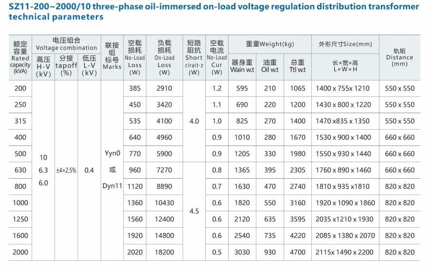 SZ11-200~2000/10 Háromfázisú olajmerítésű terhelési feszültségszabályozó és elosztó transzformátor