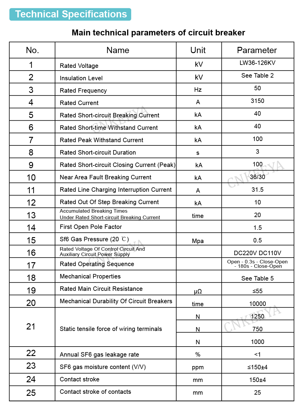 LW36-126 kültéri nagyfeszültségű váltakozó áramú kén-hexafluorid (SF₆) megszakító, rugós működtetésű mechanizmussal a három fázishoz, amelyek középen vannak elhelyezve, és a három fázis összekapcsolja, újszerű és gyönyörű megjelenést eredményezve. A megszakító SF6 gázt használ szigetelő és ívoltó közegként. Működés közben a megszakító három pólusa SF6 gázra van kötve, nyomását és sűrűségét mutató típusú sűrűségrelé segítségével figyelik. Az önhajtású ívoltás elvének és a megszakító mozgási rendszerének optimalizált kialakításának köszönhetően a mechanikai hatásfok hatékonyan javult, és a működési teljesítmény jelentősen csökkent; Kiváló törési teljesítmény és hosszú elektromos élettartam;